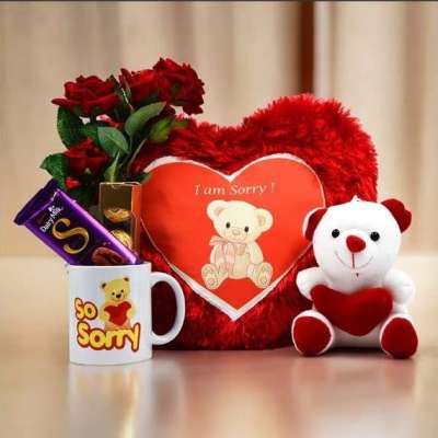 Sorry Mug & Pillow With A Rose & Chocolate Yuvaflowers